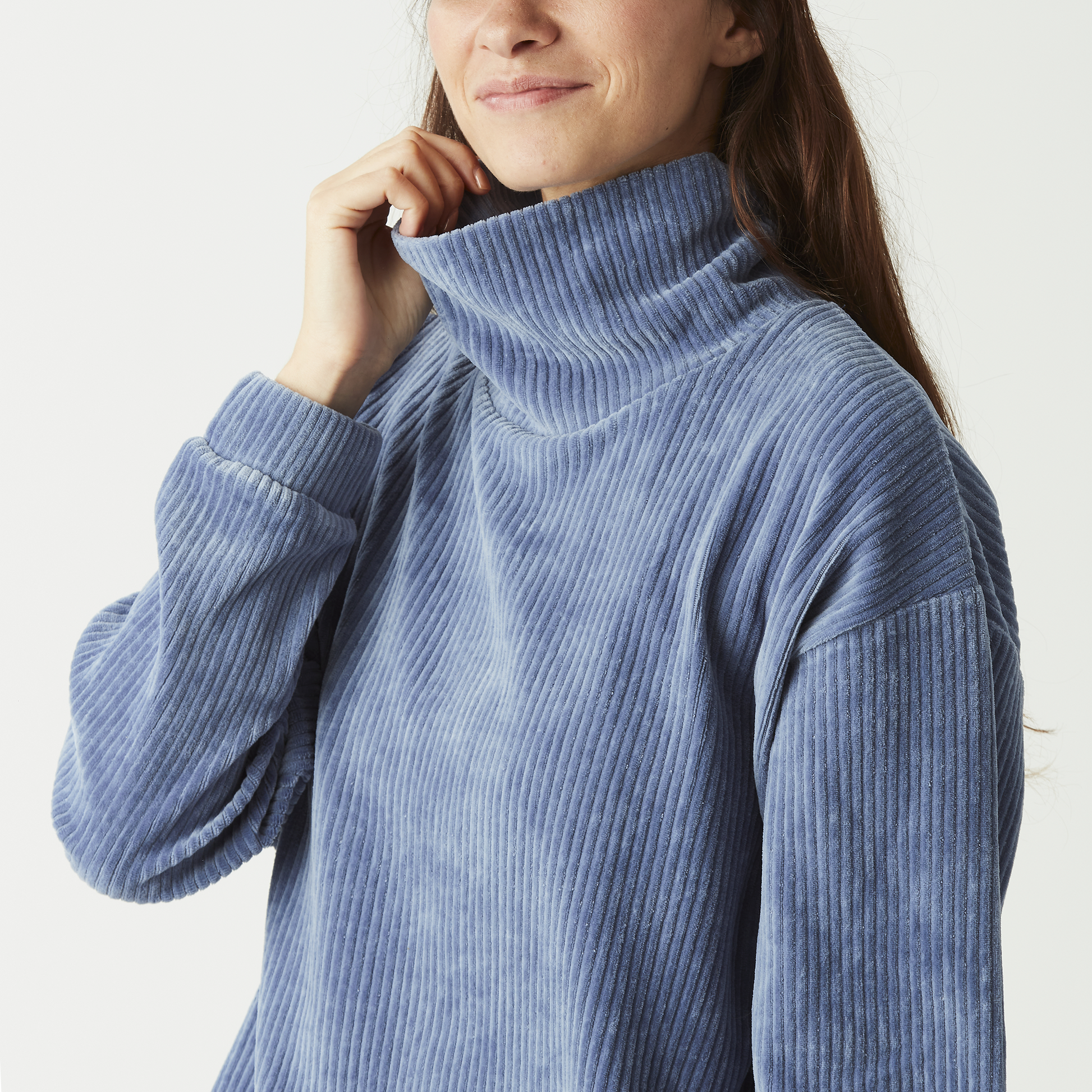 オーガニックコットンを使用した、柔らかなベルベットコーデュロイのクルーネックスウェットシャツ