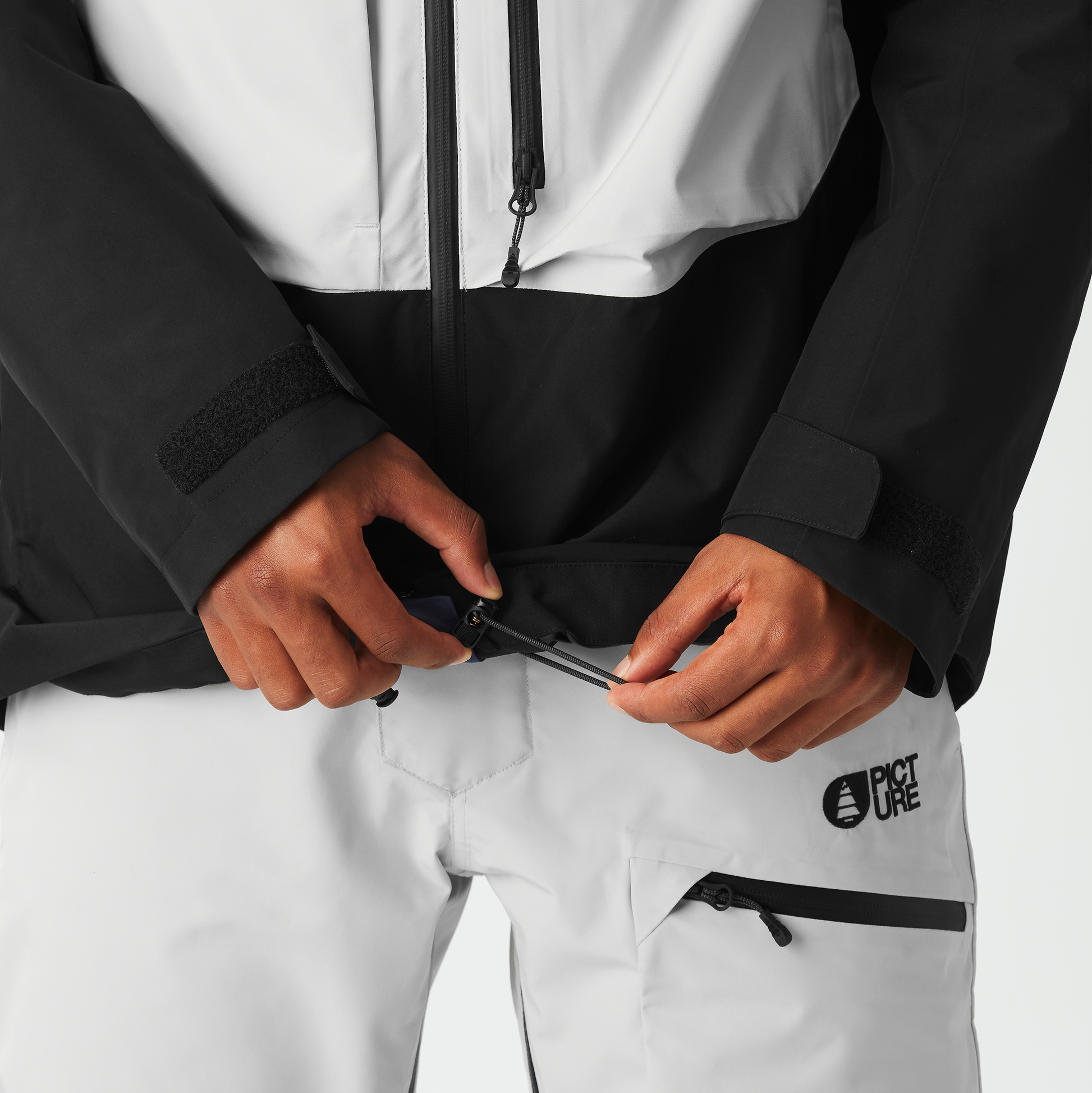 人間工学に基づいた3点調整可能なフードを備えており、ゲレンデでもバックカントリーでも、悪天候に対する最適なプロテクションを提供します。防水ジッパー付きの胸ポケットは、必需品を安全に収納し、瞬時に取り出すことができます。脇の下に戦略的に配置されたジッパー開口部は、激しい運動やダイナミックな横断時に体温を調節するのに最適な換気を提供します。内側のメッシュポケットは、機能性とスタイルを兼ね備えた追加の収納スペースを提供します。