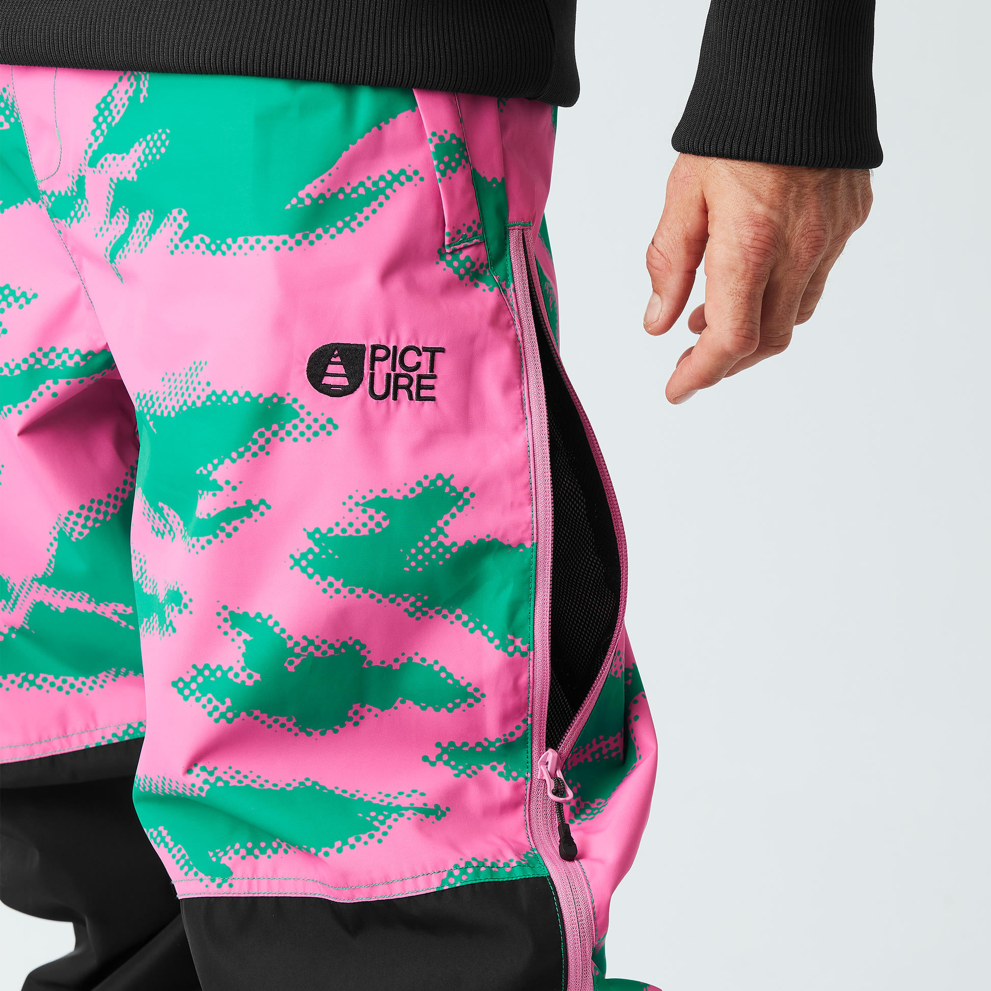 シームテープ加工が施されており、悪天候に対するプロテクション性をさらに高めているため、スキーやスノーボードに最適な一枚です。ドローコード付きの調節可能なウエストでフィット感をカスタマイズできます。サイドに配された長いジッパー開口部により、着脱が簡単で非常に快適です。実用性を考慮し、ジッパー付きバックポケットとフラップ付きの反転ジッパー付きハンドポケットを備えています。
