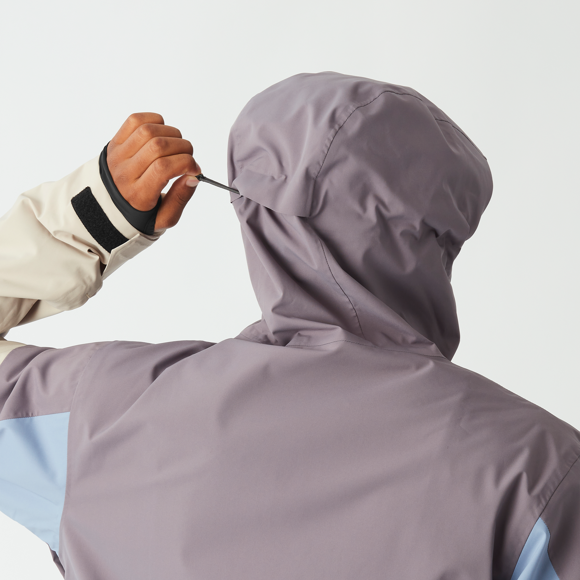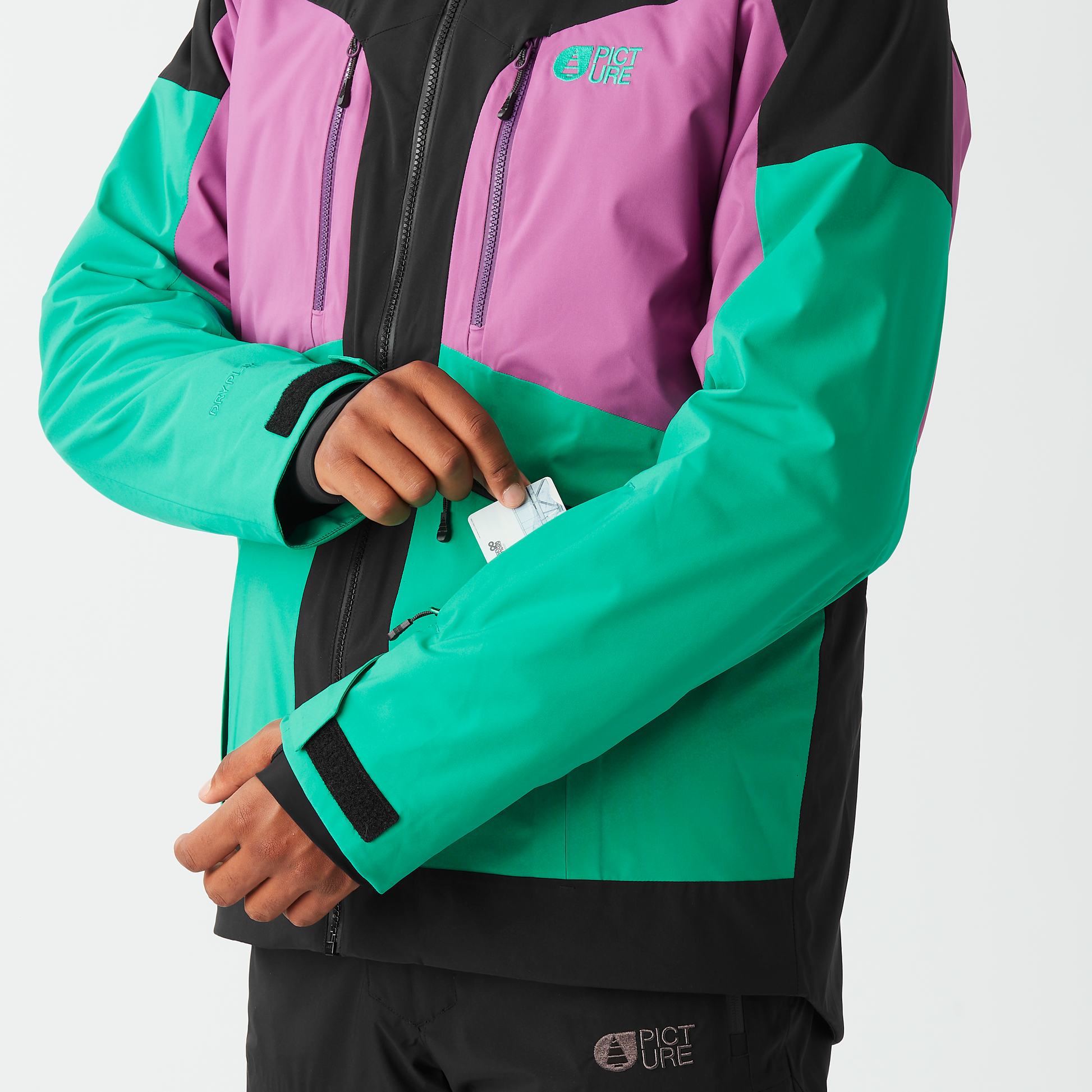透湿性を最適化するため、このジャケットにはジッパー付きベンチレーションも備わっており、パウダーでの最も激しい瞬間でも体温を簡単に調整できます。保護性とフィット感を向上させるため、フード、袖口、裾はすべて調節可能で、ハイブリッドニットのストレッチ裏地は、卓越した動きの自由を提供します。モダンなカットのこのジャケットは、ポケットや必要なすべての機能的なディテールを備えています。Naikoonジャケットがあれば、スノーパークからパウダーライディングまで、ためらうことなくシームレスに移行できます。