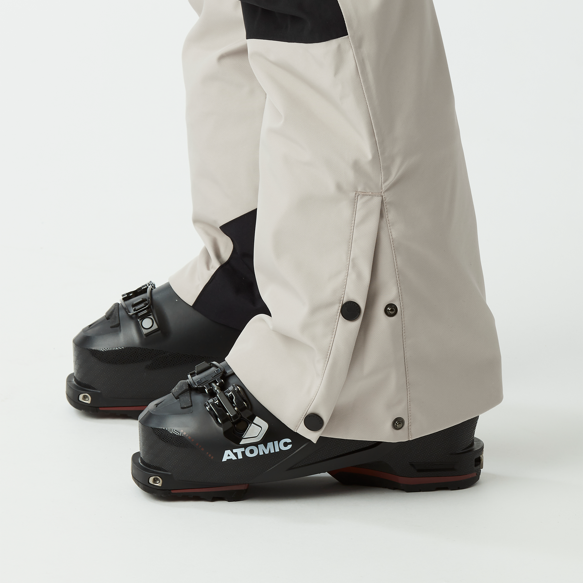伸縮性のあるウエストバンドはフィット感を調整でき、ダイナミックな滑走やパークセッション中も快適です。ゲイターがディープコンディションでの雪の侵入を防ぎ、太もものベンチレーションジッパーが登りでの通気性を高めます。ジッパー付きポケットは、必需品を安全に収納し、簡単に取り出せます。裾のスナップボタンはフィット感を調整でき、スキーブーツやスノーボードブーツとの一体感を高めます。