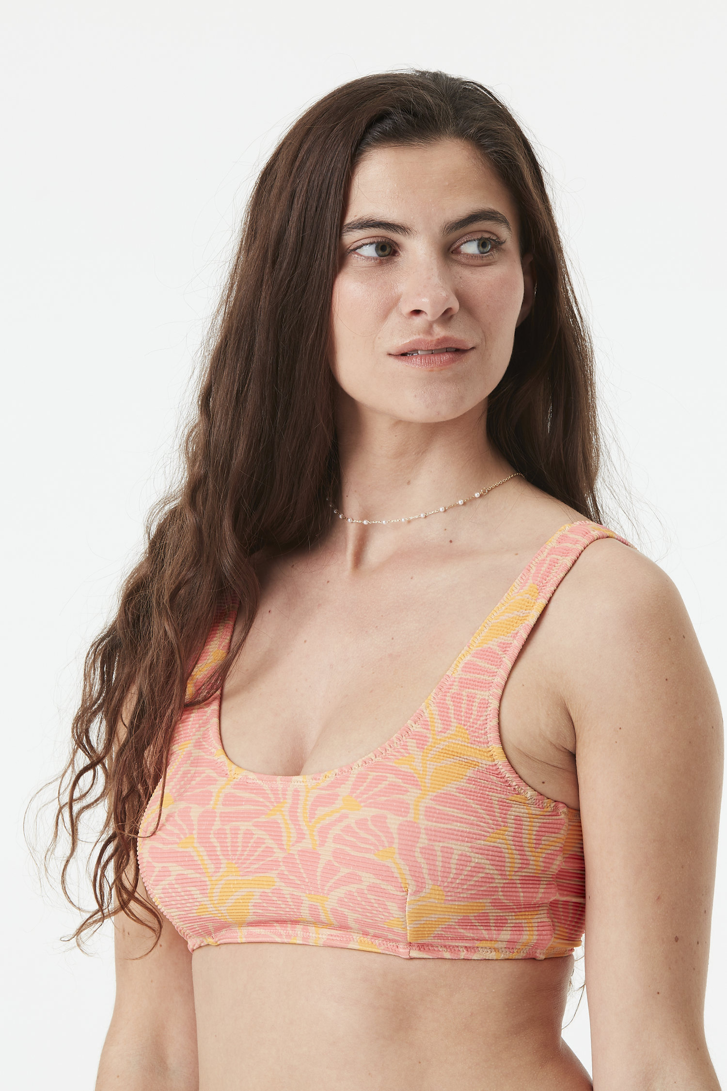 WAHINE PRINTED TOPは、水中でのアクティブな日々を過ごすのに理想的な選択肢です。テクニカルで耐久性のあるリサイクルナイロン生地で作られており、優れた伸縮性、柔らかな肌触り、耐久性を提供します。さらに、塩素や日焼け止めによるダメージに強く、UPF50+の紫外線保護機能も備えています。このビキニトップは、柔らかく伸縮性のある裏地で完全にライニングされており、最大限の快適さを保証します。Pictureのコレクションのどんなボトムスとも組み合わせることができ、スタイルとパフォーマンスを両立させます。